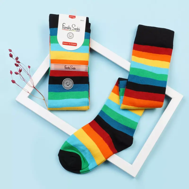 جوراب زنانه پنبه بلند طرح رنگین کمانی