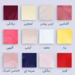| رنگ | پنککی, زرد, زرشکی, سرمه ای, سفید, قرمز, کالباسی, کالباسی کمرنگ, کرمی, کرمی روشن, گلبهی, لیمویی, مشکی |