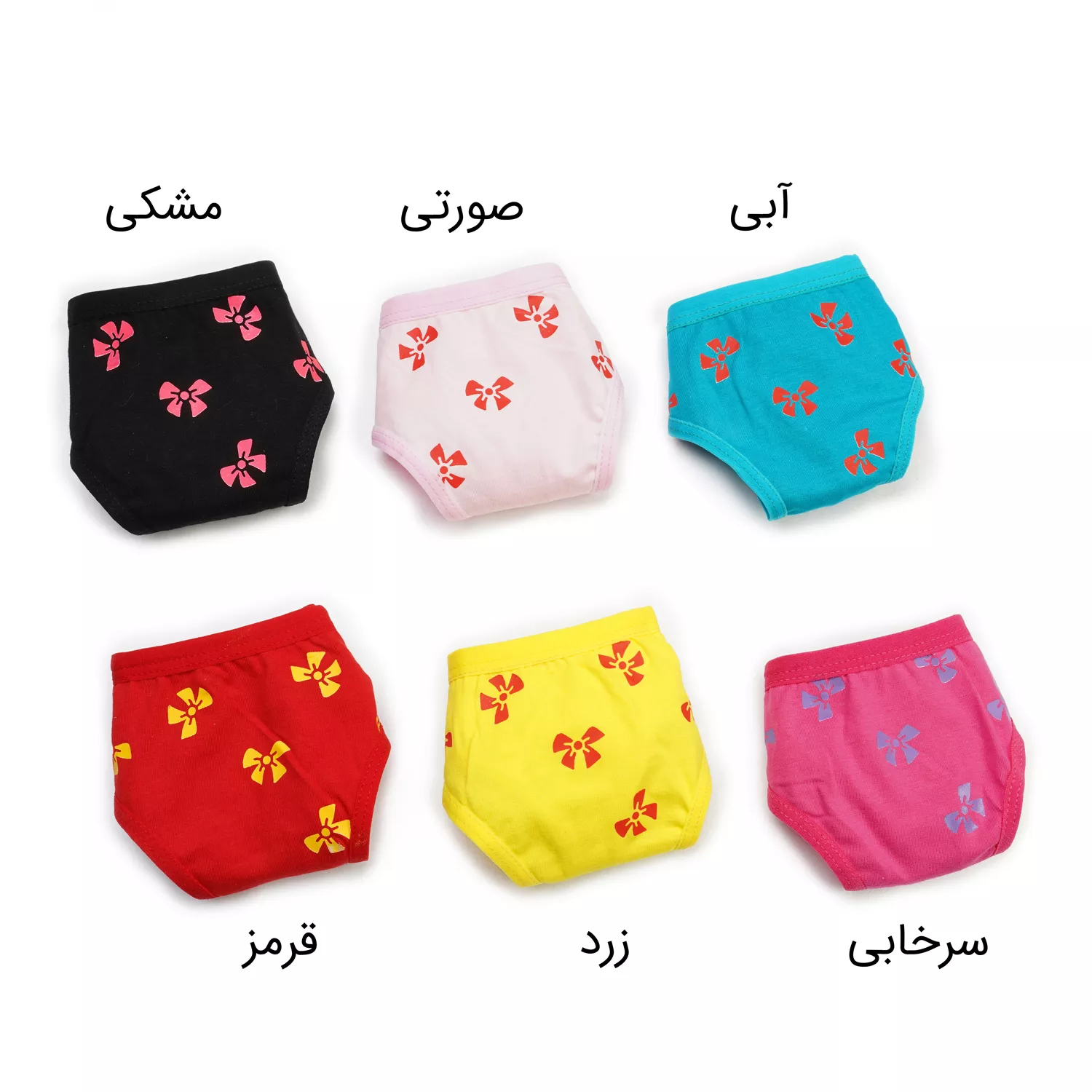 آبی, زرد, سرخابی, صورتی, قرمز, مشکی