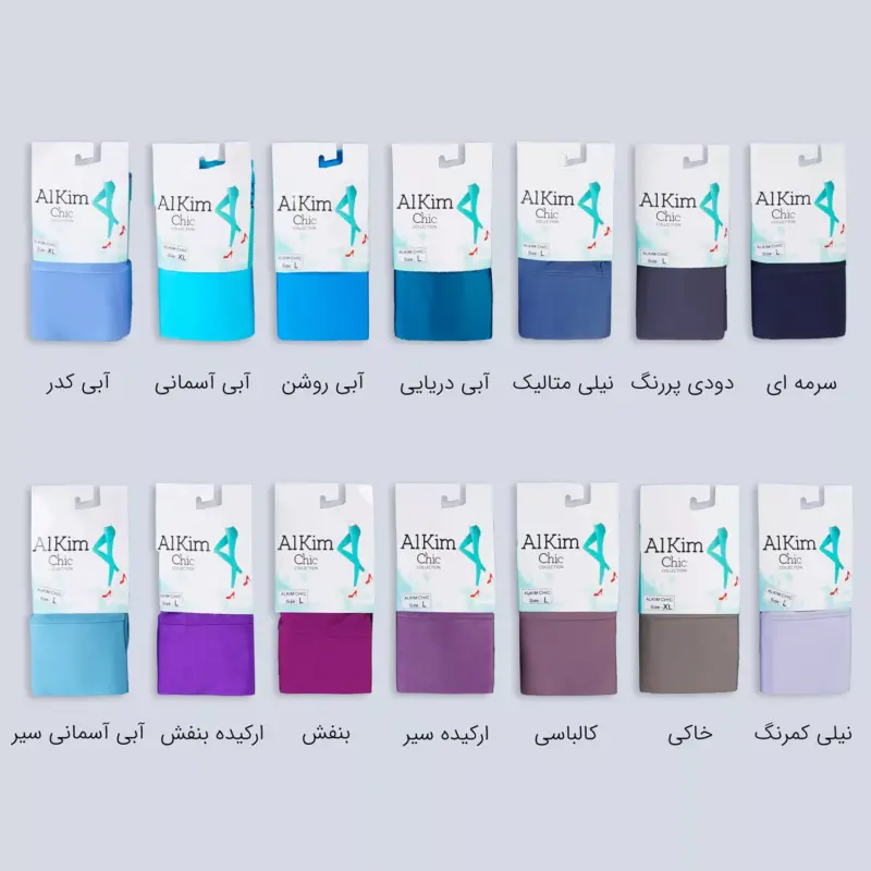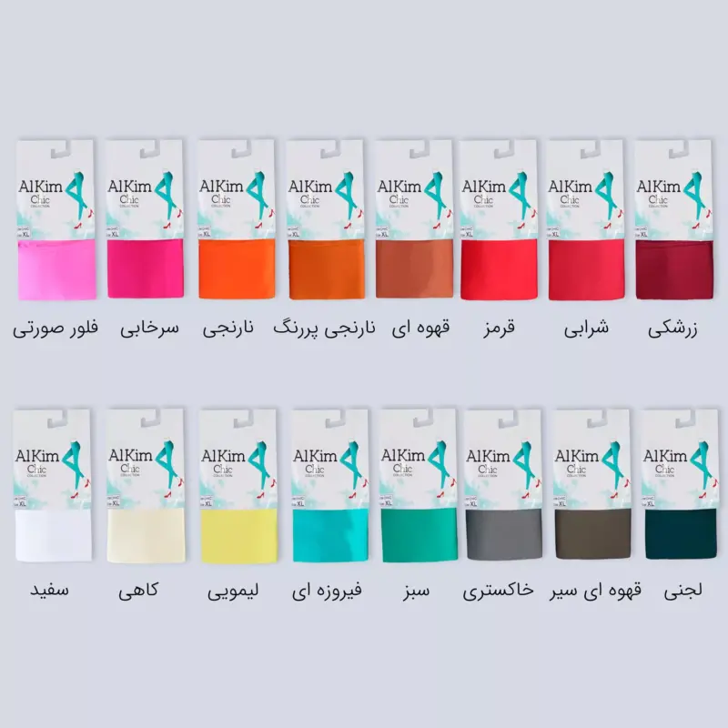 | رنگ | آبی آسمانی, آبی آسمانی سیر, آبی دریایی, آبی روشن, آبی کدر, ارکیده بنفش, ارکیده سیر, بنفش, خاکستری, خاکی, دودی پررنگ, زرشکی, سبز, سرخابی, سرمه ای, سفید, شرابی, صورتی روشن, فلور صورتی, فیروزه ای, قرمز, قهوه ای, قهوه ای سیر, کالباسی, کاهی, لجنی, لیمویی, مشکی, نارنجی, نارنجی پررنگ, نیلی کمرنگ, نیلی متالیک, هلویی پررنگ |